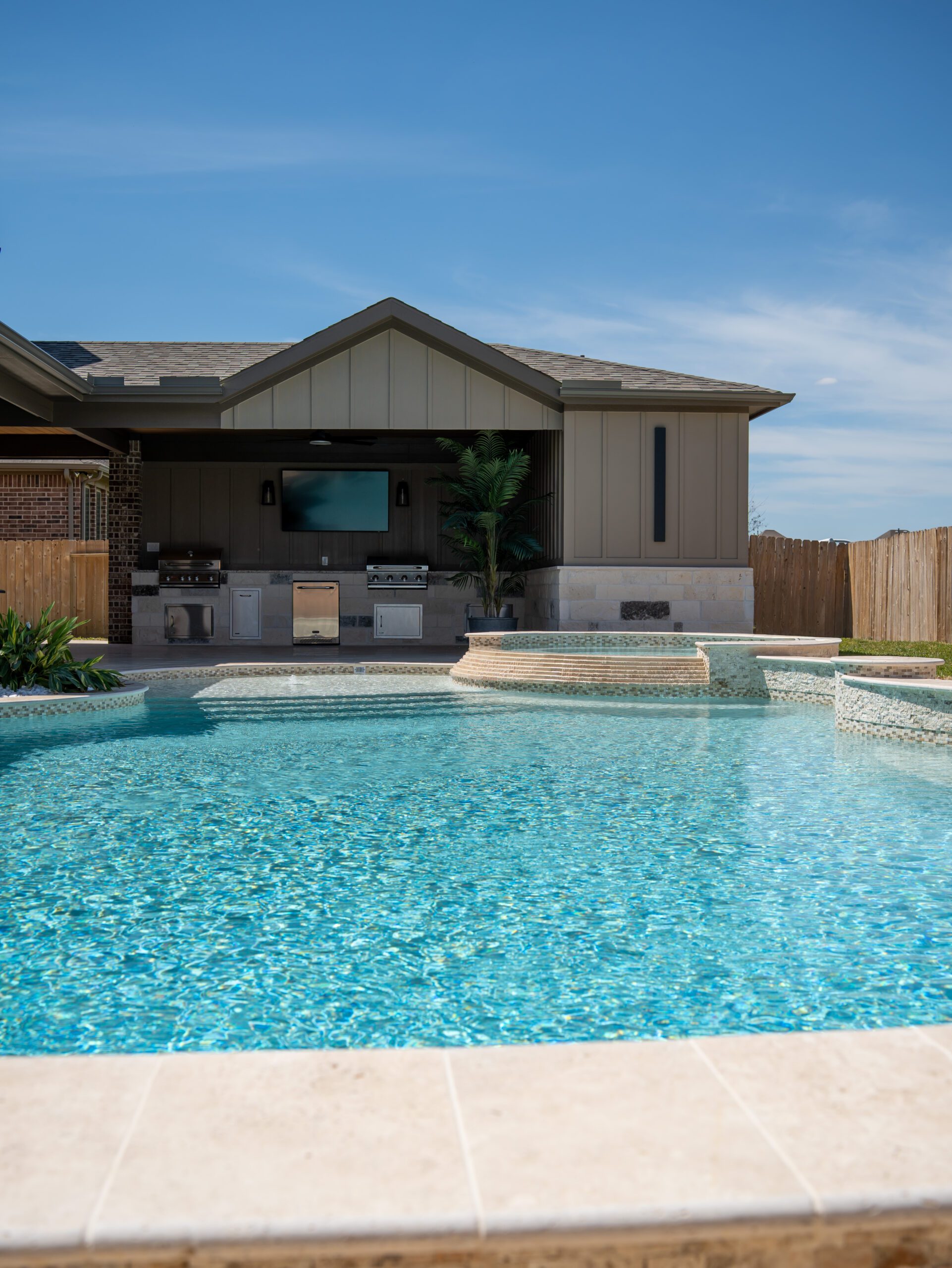 In the heart of Cypress, Texas, Cypress Southern Homes took on an exciting backyard transformation: designing and building a custom pool and patio that channeled